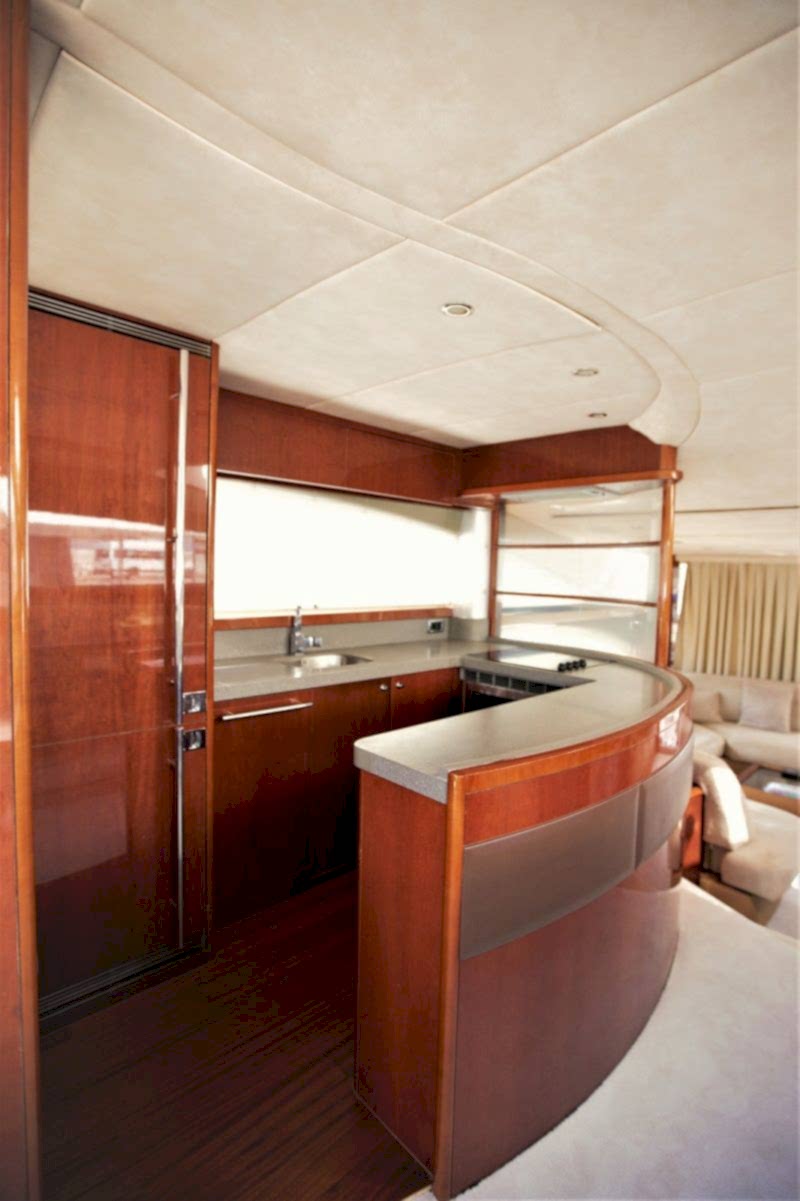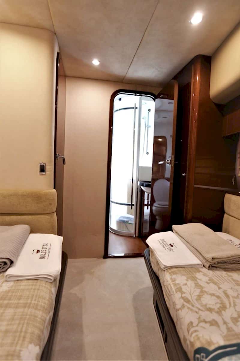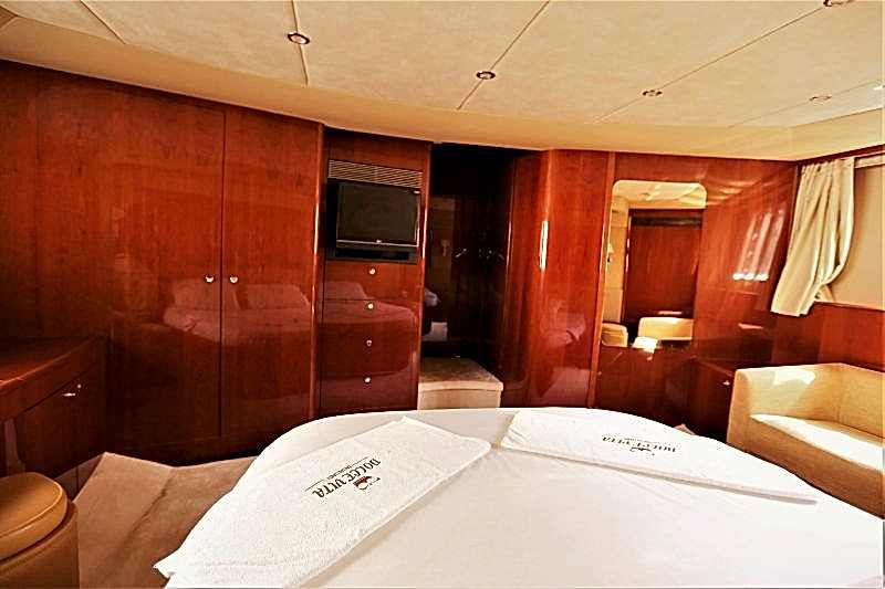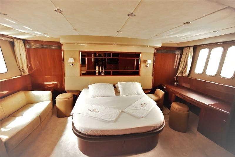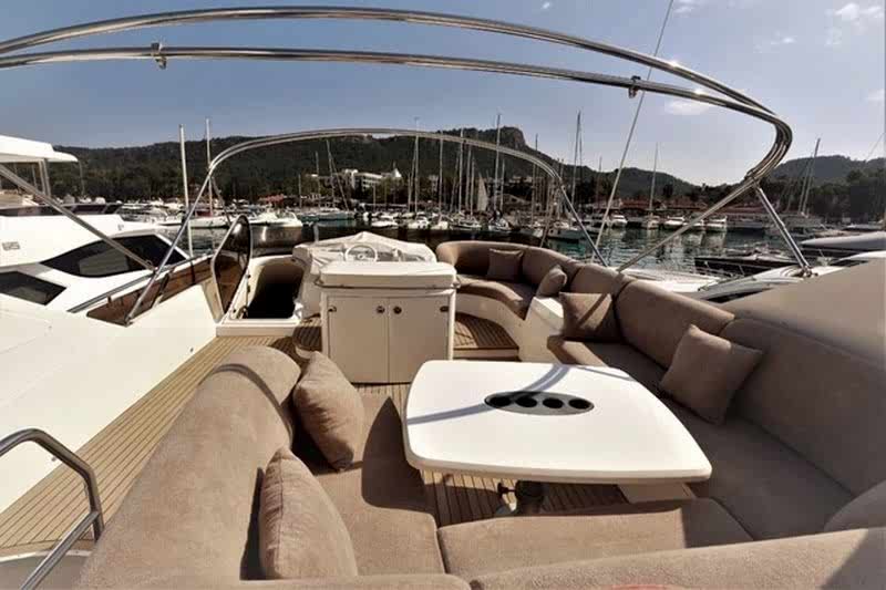 Deniz tutkusu olan misafirlerimiz için ön planda tutulan yatımız, şık ve konforlu oturma alanları ile hizmetinizdedir. 1 Master, 1 VIP, 1 Misafir kabin alternatifleri ile 6 kişiye kadar olan gruplarımızı rahat ettirebilmektedir. Güneşlenme ve Flybridge bölümü oldukça rahattır. Kaliteli hizmetinden asla ödün vermemiş teknemizde, 2 kişilik tecrübeli ve güler yüzlü ekibi mavi yolculuğunuzda sizlerle beraber olacaktır.